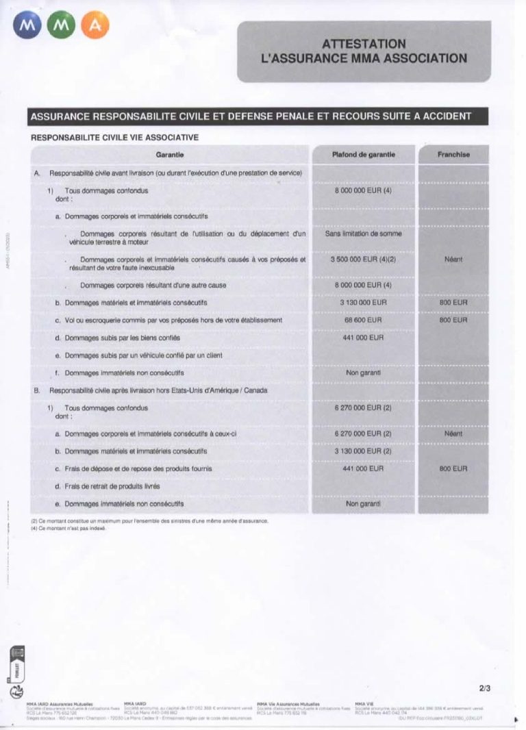 Le Club de BOXE FRANCAISE MASSERAN a souscrit une assurance Responsabilité Civile pour son activité et celle se ses préposés, salariés, bénévoles et pratiquants auprès de la MMA ASSOCIATION n° 150161005.